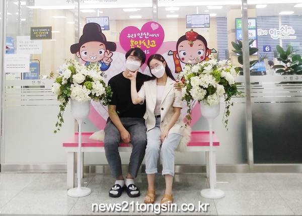 혼인신고 포토존은 단원구청 1층 로비에 위치해 혼인신고를 마친 신혼부부들이 새로운 인생의 출발을 기념하고 촬영을 할 수 있도록 꾸며져 있다.