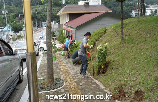 구문소동 바르게살기운동협의회(회장 정홍운)가 지난 3일(월) 동 행정복지센터 인근 도로변에 수국을 심어 훈훈한 미담이 되고 있다.
