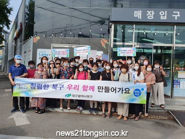 (대구=뉴스21통신) 유재원기자 = 대구 북구청은 8월 4일(화) 구청 직원 및 안전모니터봉사단과 함께 복현오거리 일원에서 주민을 대상으로 반부패·청렴문화 확산을 위한‘스스로 안전·스스로 청렴’실천 캠페인을 실시했다.