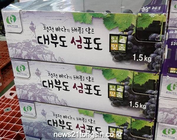 ‘대부도 섬포도’는 안산시 잎맞춤포도공선출하회에서 엄격한 공동선별 작업을 거쳐 군자농업협동조합(경기잎맞춤조합공동사업법인)을 통해 공동 출하하는 ‘캠벨얼리’ 품종의 포도이며, GAP(농산물우수관리) 인증과 경기도우수식품(G마크) 인증을 받아 품질이 보장됐다.