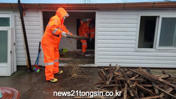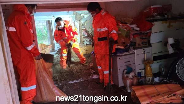 최근 집중 호우가 이어지는 가운데 남면 지역에 호우피해를 입은 가구를 찾아 지역 단체들이 긴급 복구 지원활동을 펼치며 이웃사랑을 실천하고 있다.