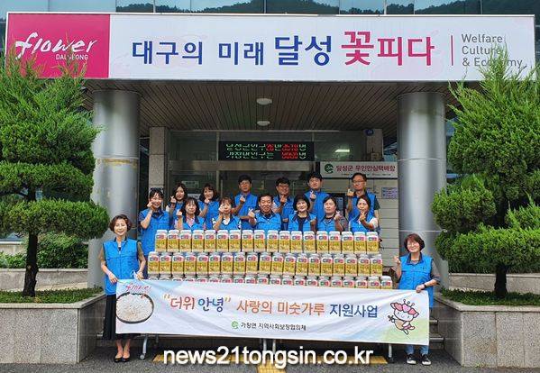 (대구=뉴스21통신) 유재원기자 = 대구시 달성군 가창면 지역사회보장협의체는 7일 가창면사무소를 방문, 무더운 여름철을 맞이하여 가창지역 저소득 주민과 독거노인에게 전달해 달라며 ‘더위 안녕, 사랑의 미숫가루’ 60개(80만 원 상당)를 기탁했다.