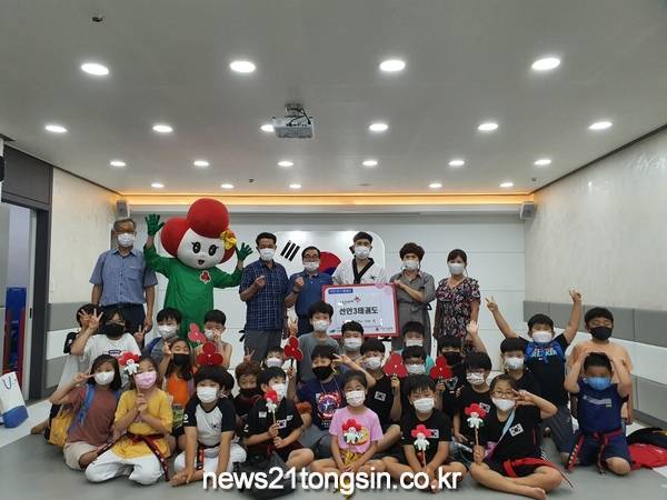 ▲ 구암동에 위치한 선인3태권도가 수련생들과 함께 착한가게 현판식을 가지고 있다.구암동지역사회보장협의체(공동위원장 김재은, 송재고)는 복지사각지대를 발굴하여, 다 함께 행복한 지역사회를 만들기 위해 착한 가게 가입을 적극적으로 홍보하고 있다.