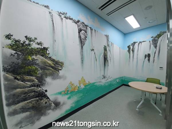 (대구=뉴스21통신) 유재원기자 = 대구서부경찰서는 경찰서 형사계를 찾은 사건관계인들에게 심리적 안정을 찾을 수 있도록 형사계 사무실 내 수묵 산수벽화 조성을 완료했다고 밝혔다.