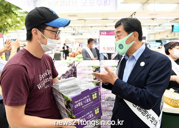 윤 시장은 “코로나19 사태 장기화로 소비가 위축되고 긴 장마까지 겹치면서 어려움을 겪고 있는 포도재배 농가에 조금이나마 힘을 보태기 위해 행사를 마련했다”며 “맛있는 대부포도를 더욱 많은 시민이 즐길 수 있도록 노력하겠다”고 말했다.