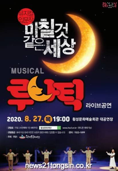 8월 마지막 주, 마음 아프고 지친 횡성군민들에게 위로를 전할 문화가 있는 날 공연이 펼쳐진다. 재단법인 횡성문화재단(이사장 : 채용식)은 오는 8월 27일(목) 오후 7시 횡성문화예술회관 대공연장에서 8월 ‘문화가 있는 날’ 공연으로 [뮤지컬 루나틱]을 개최한다.