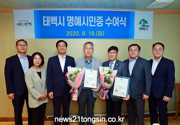 태백시는 18일(화) 대전 유성구에서 장석복 카이스트 교수와 서형선 前 (주)KT&G 정선태백지점장에게 명예시민증을 수여했다고 밝혔다.