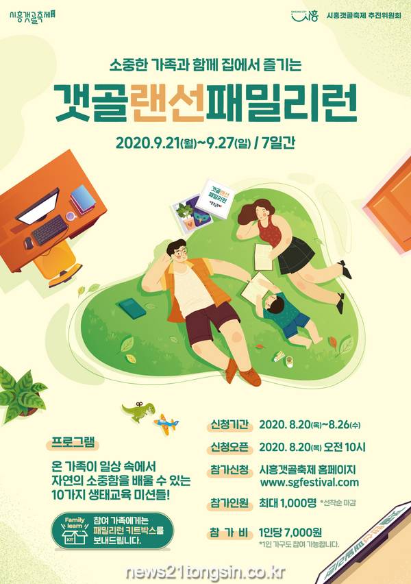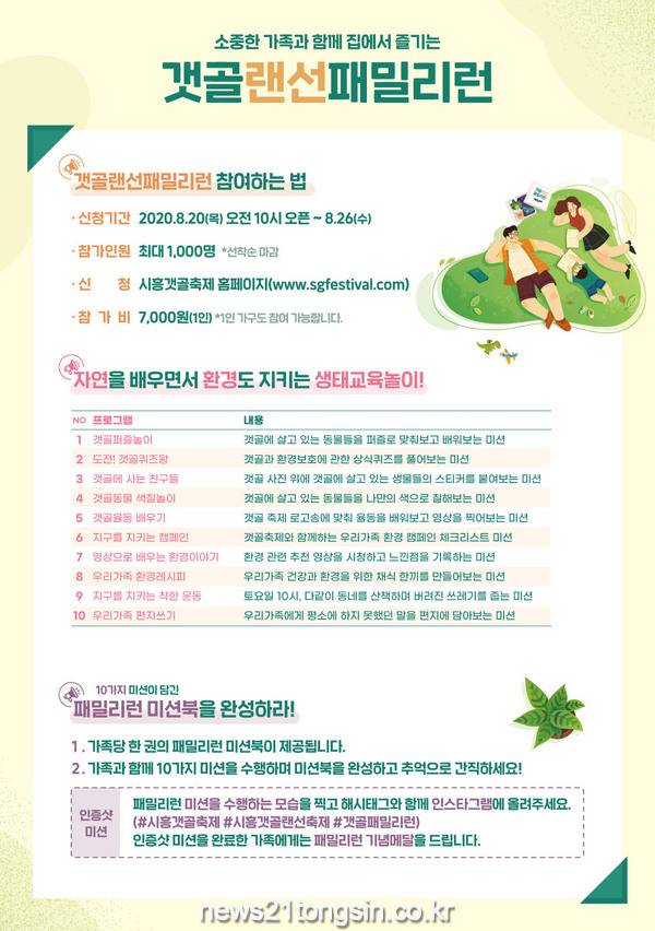 시흥시(시장 임병택)는 오는 9월 16일부터 10월 30일까지, 45일간 비대면 방식으로 열리는 제15회 시흥갯골랜선축제에서 진행될 ‘갯골랜선패밀리런’ 참가자를 모집한다.