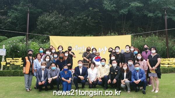 이 날 기념식은 코로나19 대비 및 사회적 거리두기 지침을 준수하기 위해 내빈과 유관단체 관계자 등 최소 인원이 참석한 가운데 소규모 행사로 진행했다. 이날 김윤환 시인은 ‘평화의 소녀상’ 동시 낭독을 통해 고통당한 소녀들의 마음을 기렸으며, 참석자 전원이 헌화하며 돌아가신 ‘위안부’ 할머니들에게 추모의 마음을 함께 전했다.