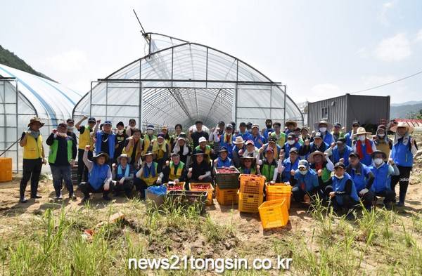 이번 봉사활동에는 직원 60여명이 참여하여 농작물 피해를 입은 비닐하우스 내 고추 수확 및 고추대 정리, 멀칭 비닐을 정리 등을 도와 침수농가가 빠른 시간 내에 제자리를 찾도록 힘을 썼다.
