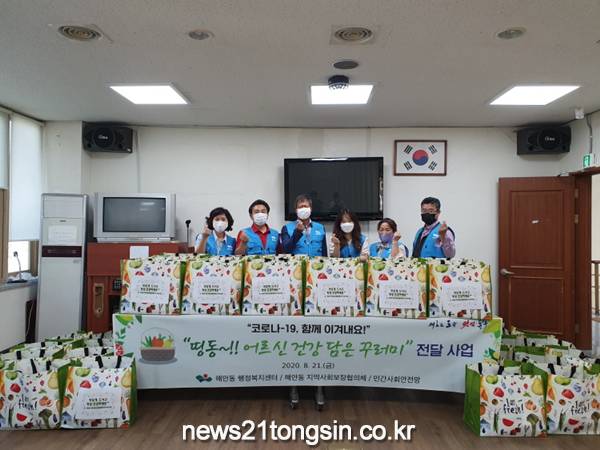 ▲ 해안동 영양식 꾸러미 전달 사진(대구=뉴스21통신) 김병철 기자= 대구 동구 해안동 지역사회보장협의체는 지난 21일 관내 취약계층 40세대에 영양식 꾸러미를 전달했다.