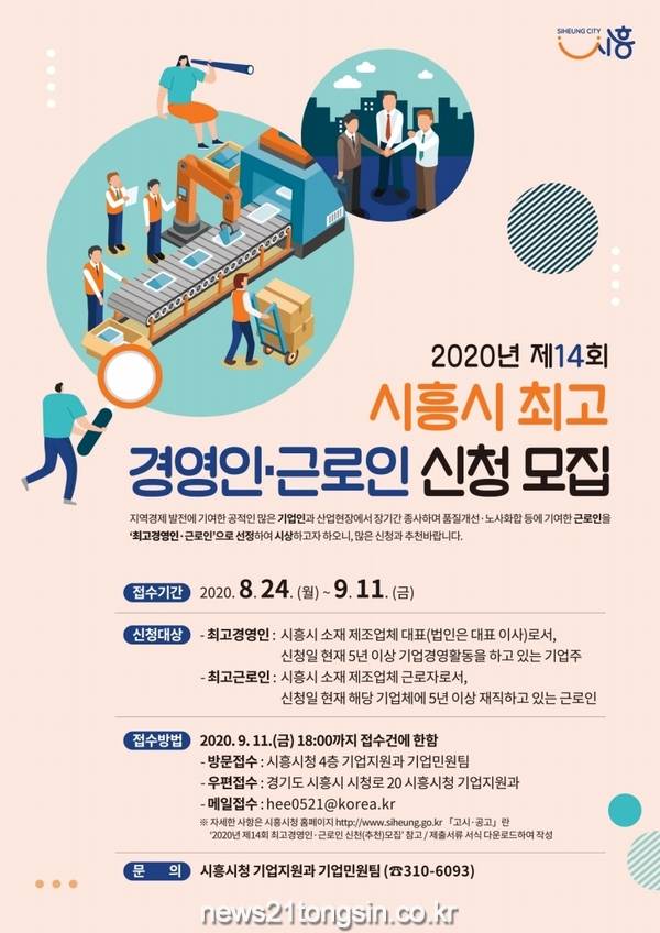 시흥시(시장 임병택)에서는 지역경제 발전에 기여한 공적이 많은 기업인과 산업현장에서 장기간 종사하며 장인정신이 투철하고, 품질개선·노사화합·개인역량 강화 등에 기여한 근로인을 발굴해 최고경영인·최고근로인으로 선정하고 시상한다.