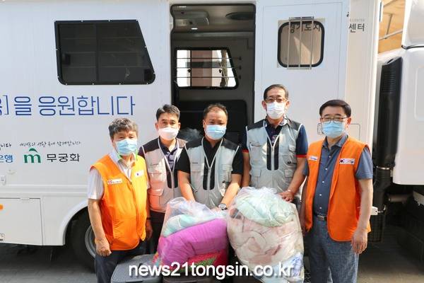 이날 센터 직원과 무궁화 임직원들은 폭염 속에서도 장애인복지관에서 접수받은 저소득층 장애인 5가구의 이불과 빨랫감을 세탁하고, 건조까지 실시했다.