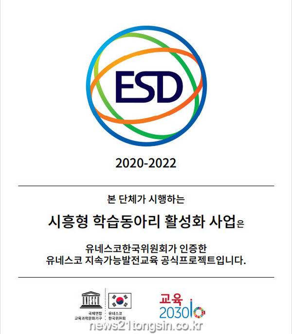 「시흥형 학습동아리 활성화 사업」이 유네스코 지속가능발전교육 재인증 승인을 받아 2022년까지 유네스코 공식 프로젝트에 다시 한 번 이름을 올렸다.