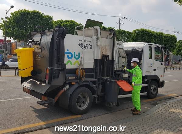 ▲ 수성구청 환경미화원이 소형음식점의 음식물쓰레기를 무상으로 수거해 차량에 싣고 있다.소형음식점 음식물쓰레기 무상수거는 코로나19 피해 소상공인 지원 대책의 일환으로, 당초 6월 1일부터 8월 31일까지 면적이 200㎡미만인 일반음식점 및 휴게음식점 등 소형음식점 5,200여 곳의 음식물쓰레기를 무상 수거할 예정이었으나 그 기간을 12월 31일까지 4개월 연장했다.