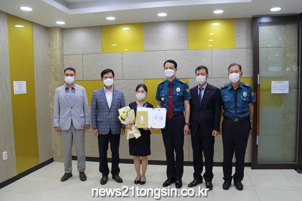 (대구=뉴스21통신) 유재원기자 = 대구강북경찰서는 2020. 8. 31.(월) 10:30 칠곡신협 본점에서 보이스피싱 피해를 예방한 칠곡 신협 태전지점 직원에게 감사장을 수여했다.