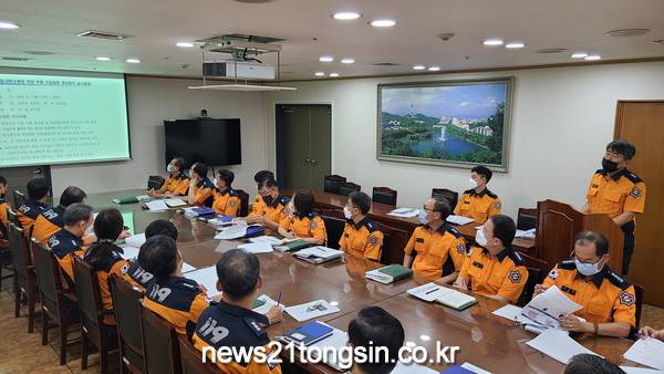 ▲ 대구소방은 태풍 마이삭에 선제적으로 대비하기위하여 상황판단회의를 가지고 있다.이번 태풍은 지난주 강타한 태풍 ‘바비’보다 많은 비와 강한 바람이 예상되며, 남해안으로 상륙하면서 대구지역에 많은 피해가 우려되는 상황이다.