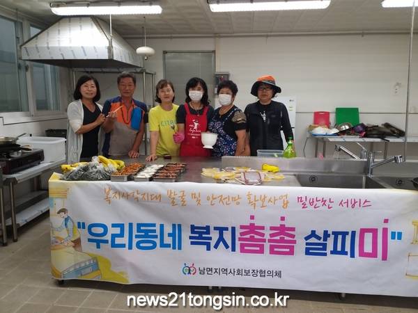 ‘우리동네 복지촘촘 살피미’ 사업은 2019년 7월 남면지역사회보장협의체 심의·의결을 거쳐 결정된 사업으로 매달 3차례씩 남면의 5가구에 협의체 위원들이 직접 만든 밑반찬을 전달하고 있다.