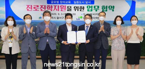 이번 협약으로 LH대구경북지역본부는 대구본부 사옥 일부를 무상제공하고 달서구에서는 진로진학센터 설치․운영을 위한 행·재정적 사항 전반을 맡게 된다.