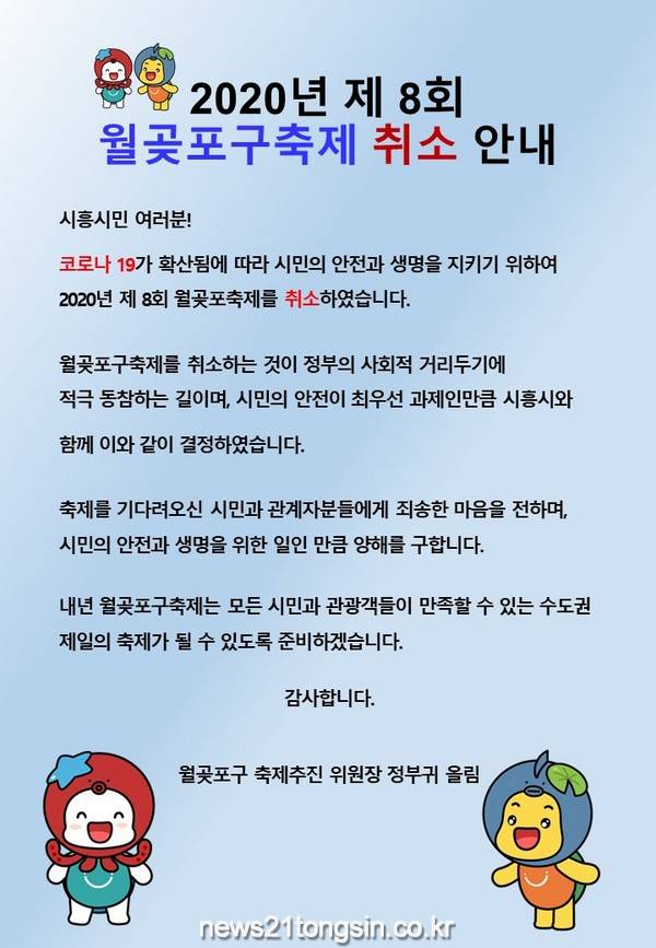 그 결과, 축제를 취소하는 것이 정부의 감염병 관리 대책과 시민의 생명과 안전을 위해 옳은 결정이라는 판단 하에 이 같은 결정을 내렸다.