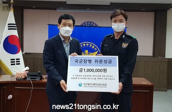 (대구=뉴스21통신) 유재원기자 = 동부교육지원청은 9월 8일(화) 민족 고유의 명절인 추석을 맞아 대구중부경찰서를 방문하여 의무경찰로 복무중인 장병들을 격려하고, 위문금을 전달했다.
