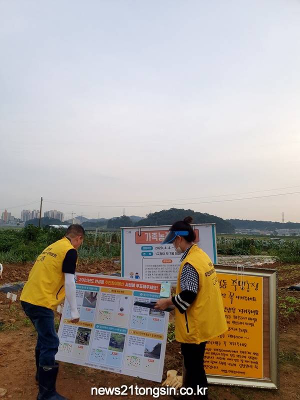 코로나19의 확산으로 사회적 거리두기 단계가 격상됨에 따라, 기존에 계획했던 주민총회를 통한 현장투표 운영을 하지 않고, 연성동 행정복지센터 내방객과 연성동 주말농장 참여주민 등을 대상으로 코로나 확산방지 예방수칙을 준수해 주민투표를 진행 중이다.