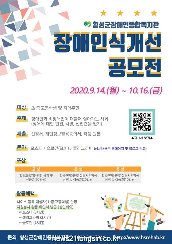 에서 작품 접수중이며, 횡성관내 초·중·고등학생 및 지역주민이라면 누구든 참여 가능하다.