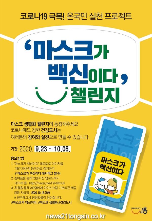 시흥시(시장 임병택)는 9월 23일부터 2주간 ‘마스크가 백신이다’ 챌린지 이벤트를 진행한다.