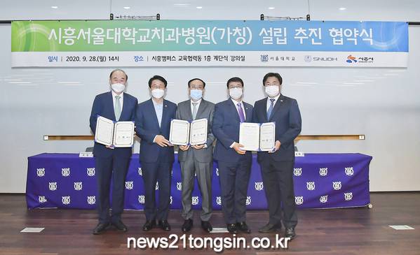 시흥시(시장 임병택)는 28일 서울대학교 시흥캠퍼스 교육협력동에서 서울대학교, 서울대학교 치과병원과 함께 ‘시흥서울대학교치과병원(가칭) 설립을 위한 협약'을 체결했다.