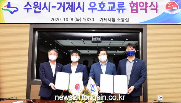 수원시와 거제시는 8일 거제시청에서 ‘우호도시 결연협약’을 체결하고, 적극적인 교류·협력을 약속했다.