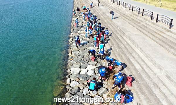 참가자들은 관광객들이 무단투기한 생활쓰레기와 지난 여름철 호우 시 떠내려 온 수초 20여톤을 수거하고 해양쓰레기 수거 모니터링을 함께 진행했다.