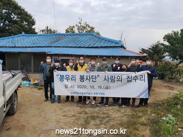 ❏ 연천군시설관리공단 관광사업팀 봉우리 봉사단에서는 10월 16일(금) 연천군 관내 소외계층(독거노인과, 소년·소녀가장) 대상으로 열악한 주거환경 개선을 위해 사랑의 집수리 봉사 활동을 전개하였다.