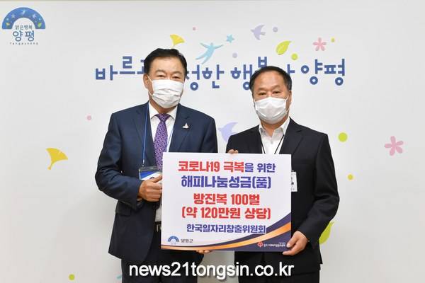 한국일자리창출위원회(이사장 김광호)에서 8월 방진복 200벌 기탁에 이어, 지난 27일 2차로 방진복 100벌을 양평군에 기탁했다는 훈훈한 소식을 전했다.