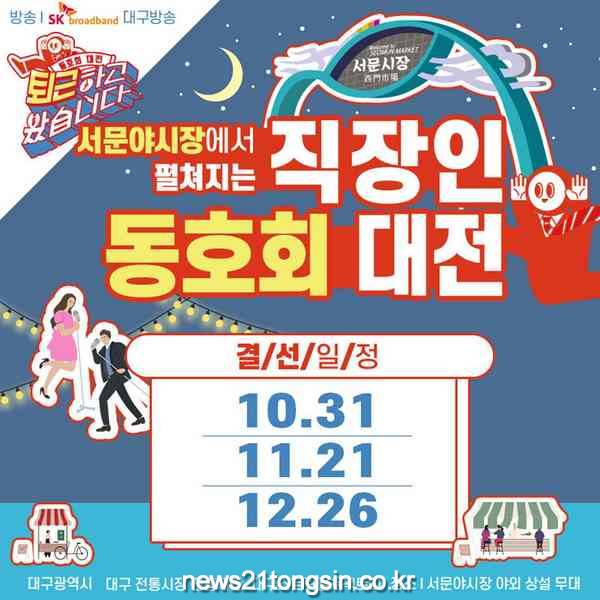 (대구=뉴스21통신) 유재원기자 = 직장인 동호회의 노래대결 프로그램인 직장인 동호회 대전 ‘퇴근하고 왔습니다’ 무대가 10월 31일 오후 8시 서문야시장 상설무대에서 펼쳐진다.