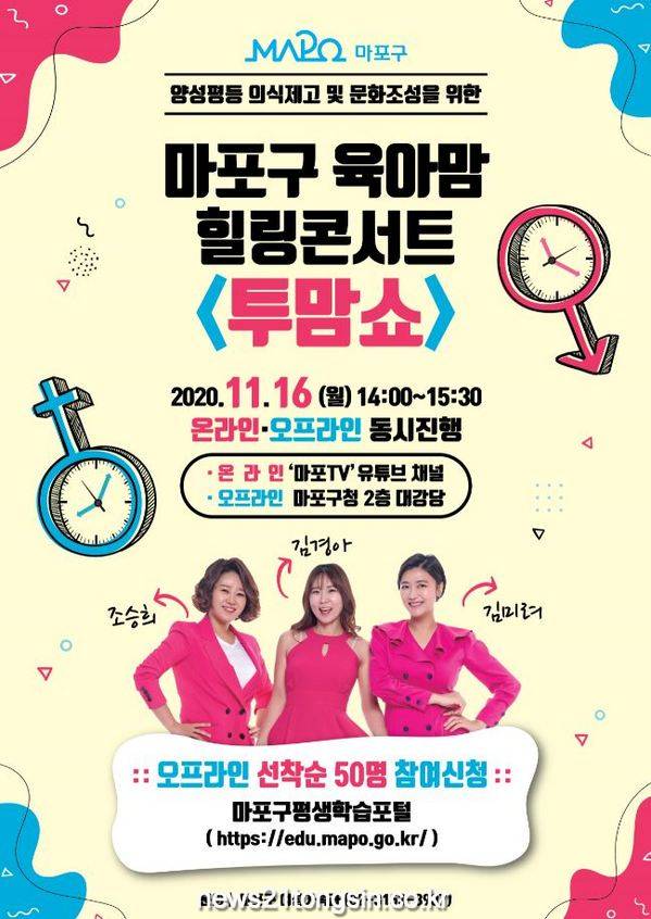 온‧오프라인 동시진행으로 이루어질 ‘투맘쇼’는 마포구 공식 유튜브 채널(마포TV)에서 실시간 생중계될 예정이다.