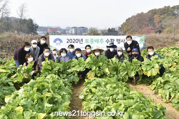 양평군(군수 정동균)은「양평 토종자원 클러스터 기반구축」을 위한 사업으로 9월부터 농업기술센터 시험포장에서 토종배추(조선·청방·구억) 3품종 1,000포기를 재배하여 지난 11월 7일(토) 토종배추 수확작업을 시작으로 11월 10일(화) 농업기술센터 운동장에서 토종 저장식품 체험 및 실습을 위한 김장 담그기 행사를 개최했다.