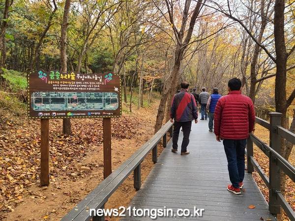 공사구간은 총 450m로다. 주거지 인근 진입로 3개소에 데크로드를 설치해 총 4km의 곰솔누리숲 산책로와 연결해 누구나 즐길 수 있는 숲길을 조성했다.