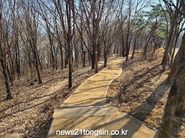 ▲ 대구 북구 침산공원에 주민 힐링공간으로 맨발산책로를 조성했다.올해 북구청은 침산공원 4봉에서 5봉 기존 등산로를 이용하여 맨발 산책로를 확대 조성하였고, 이번에 완료된 맨발 산책로 210m 전 구간에는 마사토로 포장하여 신발을 신지 않고 놀았던 어릴적 동심을 느낄 수 있는 공간으로 마련했다.