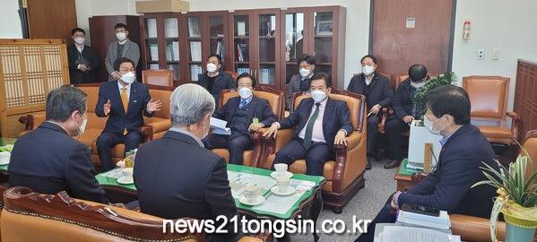 류태호 태백시장이 구충곤 전국폐광지역시장·군수행정협의회장(화순군수)을 비롯한 6개 시·군 시장·군수와 함께 8일(화) 오후 2시 국회의사당을 방문, 이학영 산업통산자원중소벤처기업위원회위원장과 복기왕 국회의장 비서실장에게「한국광업공단법안」부결 서명서를 전달했다.