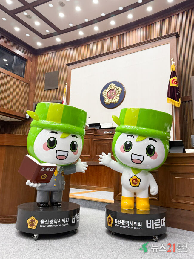 [뉴스21 통신=최세영 ]▲ 사진제공=울산광역시의회울산시의회(의장 이성룡)는 12월 17일 열린 제260회 제2차 정례회 제4차 본회의에서 의회 소통 캐릭터 ‘바르미’ 조형물 2종을 처음 공개했다고 밝혔다. 이번 조형물 설치는 시민이 의회를 더 친근하게 느낄 수 있는 환경을 조성하고, 청소년 견학과 시민 방문이 활발히 이루어지고 있는 ...