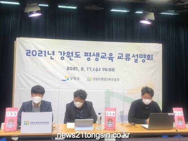 강원도평생교육진흥원은 강원도-강원도교육청-시・군과의 평생교육 협력체계를 구축하기 위해 2월 17일 온라인 화상회의 프로그램 줌(ZOOM) 활용한「2021년 강원도 평생교육 교류설명회」를 개최했다.