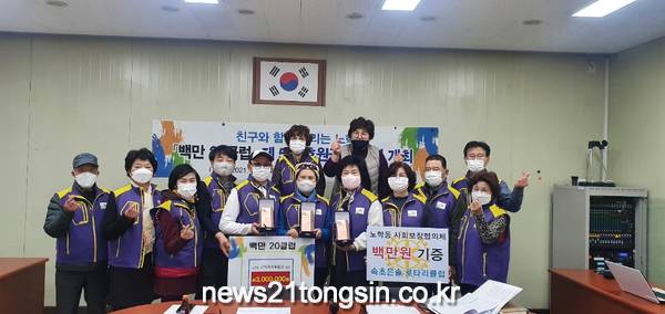 노학동지역사회보장협의체(민간위원장 신오일, 공공위원장 노성호) 16일 오후 2시 노학동행정복지센터에서「백만 20클럽」제5차 후원금(3백만원) 전달식을 개최하였다.