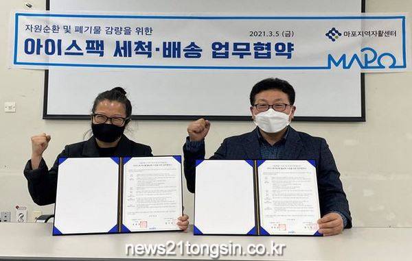 자원순환 및 폐기물 감량을 위해 구가 추진하는 ‘아이스팩 재활용사업’의 참여업체로 마포지역자활센터가 선정되며, 지난 5일 구와 마포지역자활센터는 세척‧배송 업무협약을 체결한 바 있다.