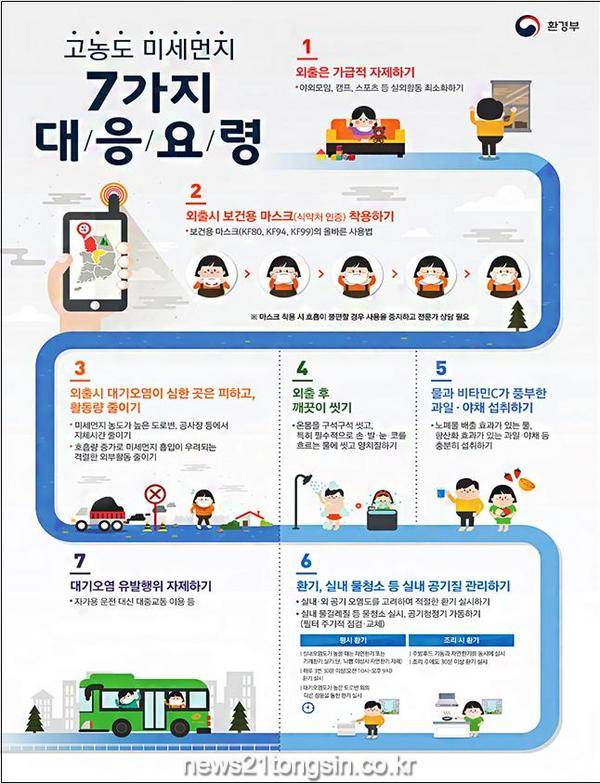문경삼 환경보전국장은 “고농도 미세먼지가 지속되고 있는 상황이기 때문에 가급적 실외활동을 자제하고 충분한 수분 섭취를 당부한다”며 “불가피한 외출 시에도 대중교통을 이용하는 등 대기오염 유발행위를 자제하고 미세먼지 대응요령을 숙지해 건강과 재산상 피해가 최소화될 수 있도록 주의해주길 바란다”고 밝혔다.