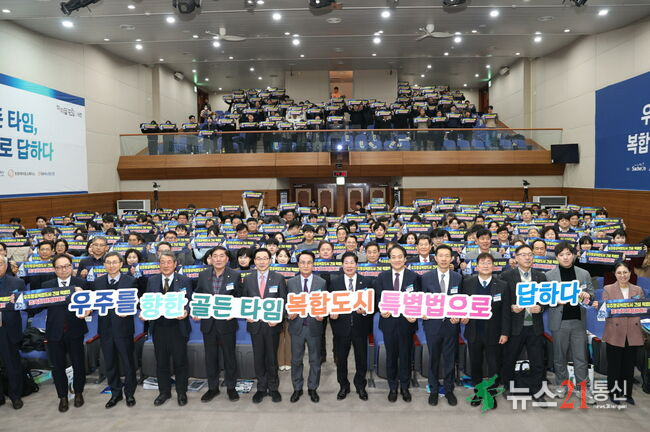 고흥군(군수 공영민)은 사천시와 함께 3일 사천시청 대강당에서 「미지답 사천포럼(우리의 미래, 지방에 답이 있다)」을 공동 개최했다.이번 포럼은 ‘우주를 향한 골든타임, 복합도시 특별법으로 답하다’를 주제로, 글로벌 우주산업 경쟁이 가속화되는 상황 속에서 우주항공복합도시 특별법의 조속한 통과와 구체적인 추진 전략을 .