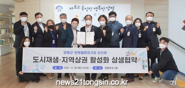 양평군은 지난 20일(화) 도시재생·지역상권 활성화를 위하여 양평물맑은시장 상인회와 상생협약(MOU)을 체결했다.