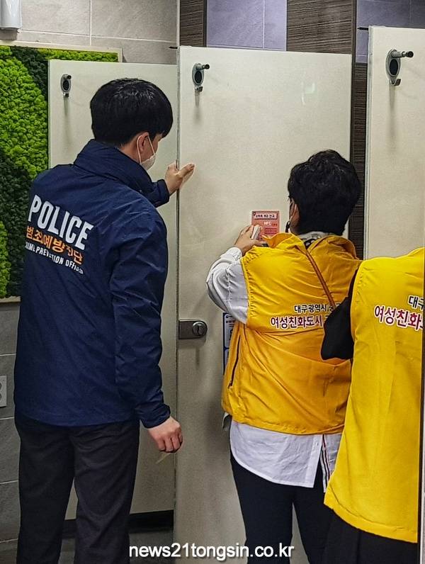 (대구=뉴스21통신) 유재원기자 = 대구중부경찰서는 22일 중구청 여성친화도시 구민참여단과 함께 공원·지하철역 등의 공중화장실 71곳을 대상으로 NFC태그 스티커를 이용한 112비상신고체제를 구축하는 사업을 추진했다.