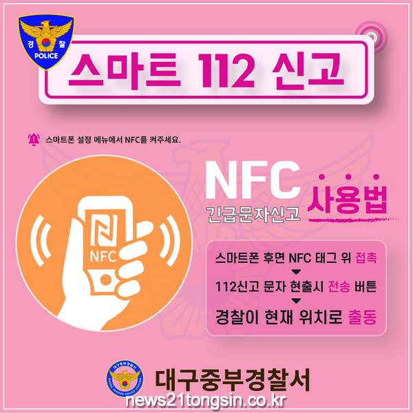 양시창 서장은 “관광지역인 중구에 정확한 신고위치를 모르는 경우가 있는데 이를 보완한 112신고 방법이다.”며 “NFC안심존 구축으로 좀 더 촘촘한 범죄예방 시스템이 구축 될 것으로 예상되며, 사회적 약자 보호를 위한 안전망 구축을 위해 앞으로도 중구청 등 유관기관과 협업체계를 공고히 하겠다.”고 밝혔다.
