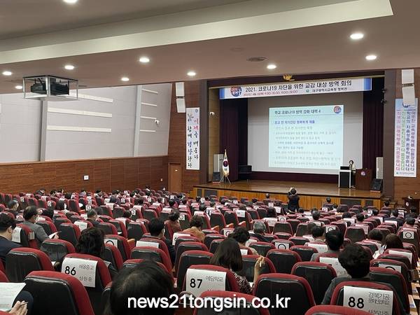 (대구=뉴스21통신) 유재원기자 = 대구시교육청은 전국적으로 코로나19 신규 확진자가 하루 700명을 웃돌고 있는가운데 최근 대구지역 학생 및 교직원 확진자가 증가하면서 학교 내 방역 강화 방안 안내를 위해 2021. 4. 22.(목) 관내 중학교 교감 125명과 고등학교 교감 98명 등 223명을 대상으로 2차례 학교 방역 강화 긴급회의를 개최했다.