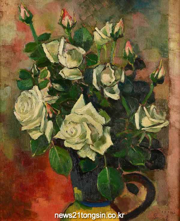 ▲ 이인성, 장미있는 정물, 1930년대, 45×37cm, Oil on wooden panel